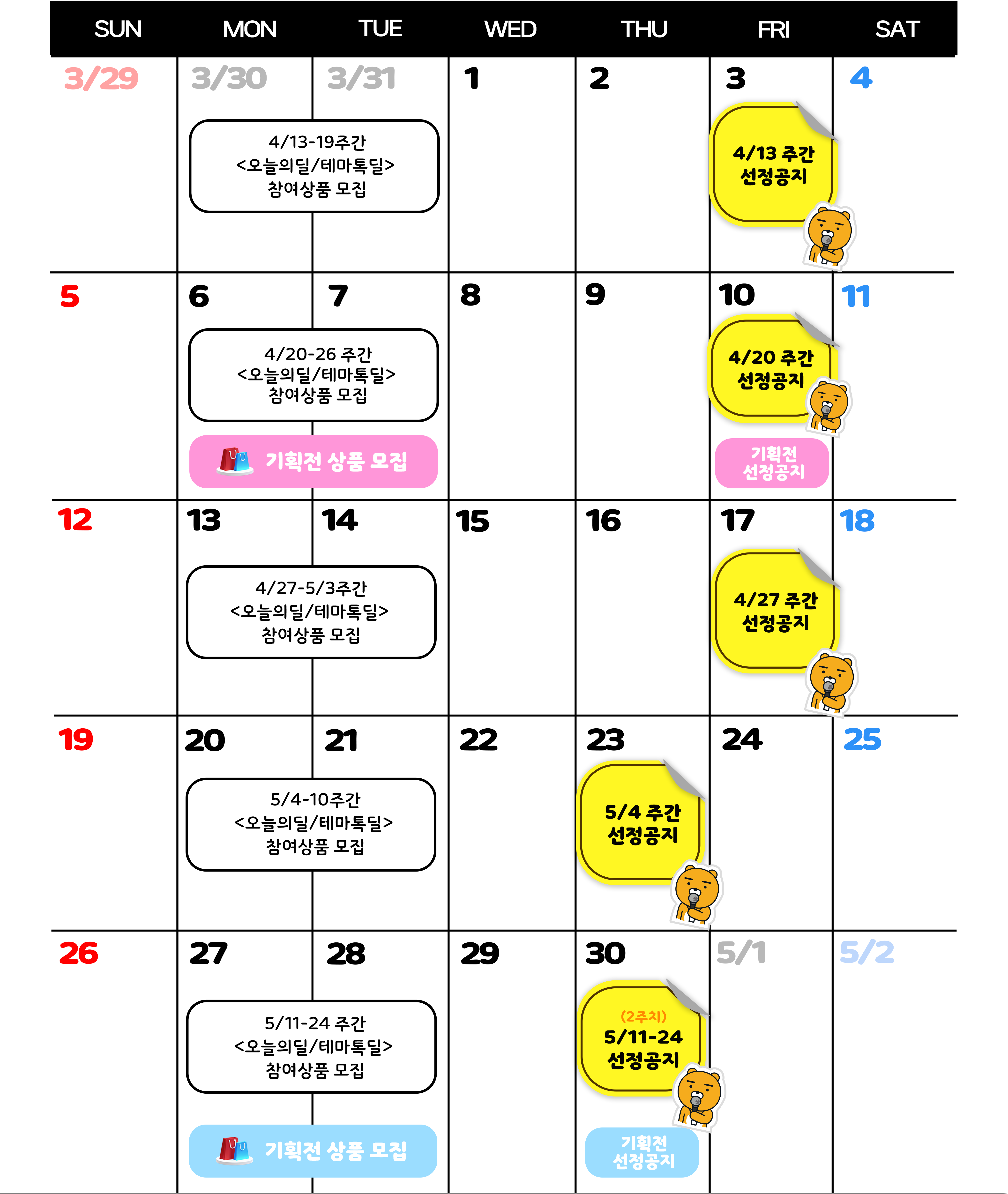 | 5월 기획전 상품 모집 (4/27~28 예정) |