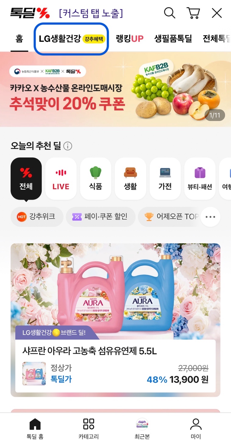 ✔️ 톡딜 서비스/쇼핑탭 전시여부 - 전시함