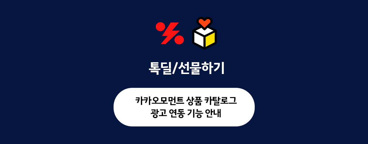 - 적용 사항 : 카카오톡 선물하기 및 톡스토어(톡딜) 상품 〉 광고 자산 카탈로그 자동 연동 제공